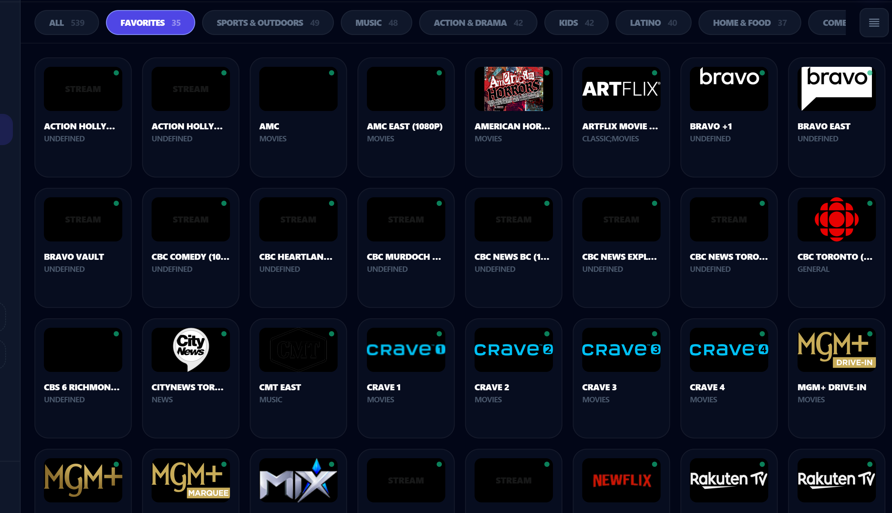 • Favorites system – star what you actually watch